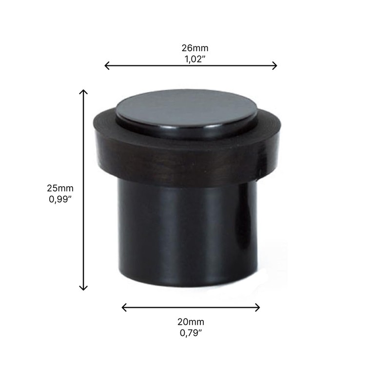 EVI | Floor Doorstop | 25X20cm | Threaded Base | Black Lacquered - Black Rubber | Stainless Steel | Includes Screw + Clamping Anchor | Mod I-181