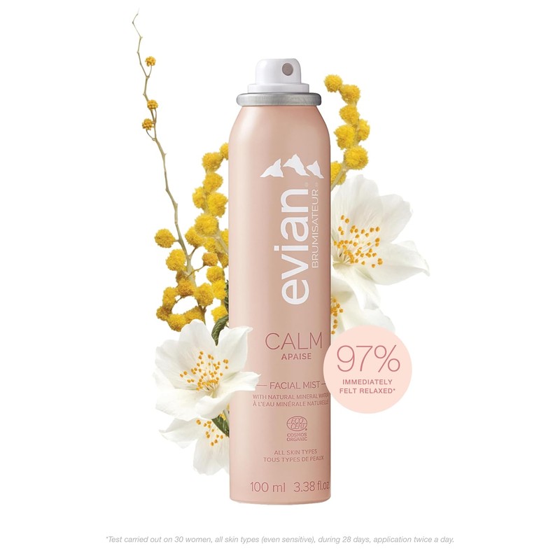 Evian Calm Facial Mist | Hydrating Mineral Water Face Spray with Aloe & Jasmine | Calming Toner Mist for Sensitive Skin | Travel Facial Spray to Hydrate, Refresh, & Calm Skin Anytime