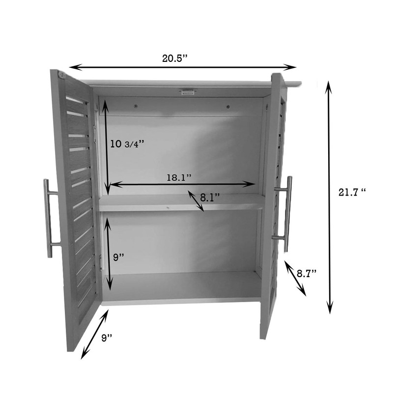- Features 2 painted oak painted color finish doors + one white shelf inside