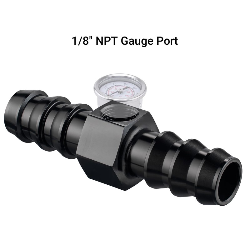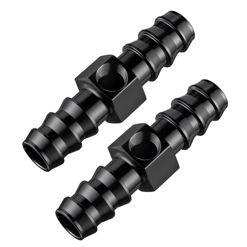 EVIL ENERGY 1/2 Barb Fuel Pressure Gauge Fitting Adapter with 1/8 NPT Sensor Gage Port Aluminum Black 2PCS
