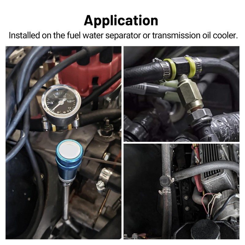 - [Application] Can be used on a fuel water separator or transmission oil cooling to add a fuel pressure gauge or temperature sensor between fuel lines.