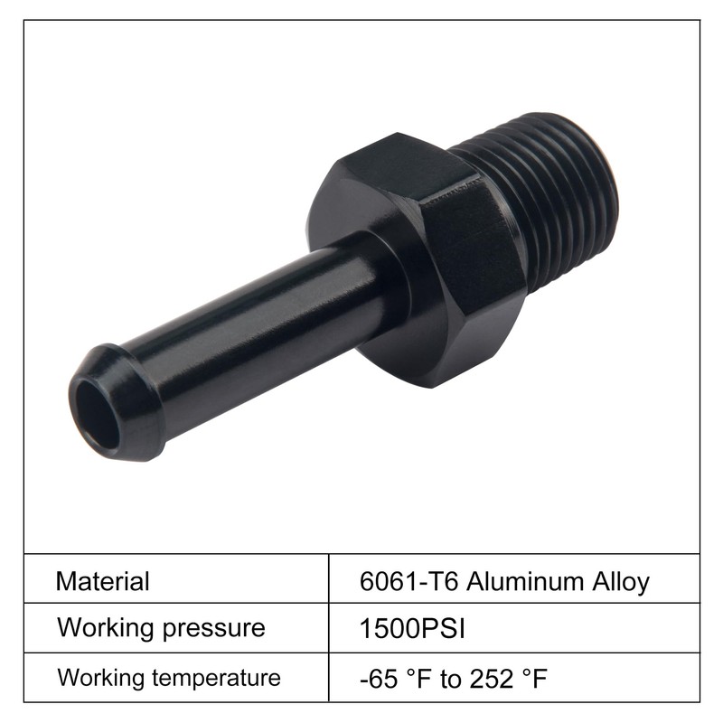 - [Size] Thread size of NPT: 1/2-14 NPT; OD of barb: 5/8 inch.
