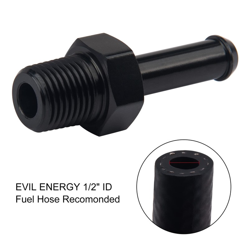EVIL ENERGY 1/2" NPT Male to 5/8" Barb Fitting Adapter Straight Aluminum Black
