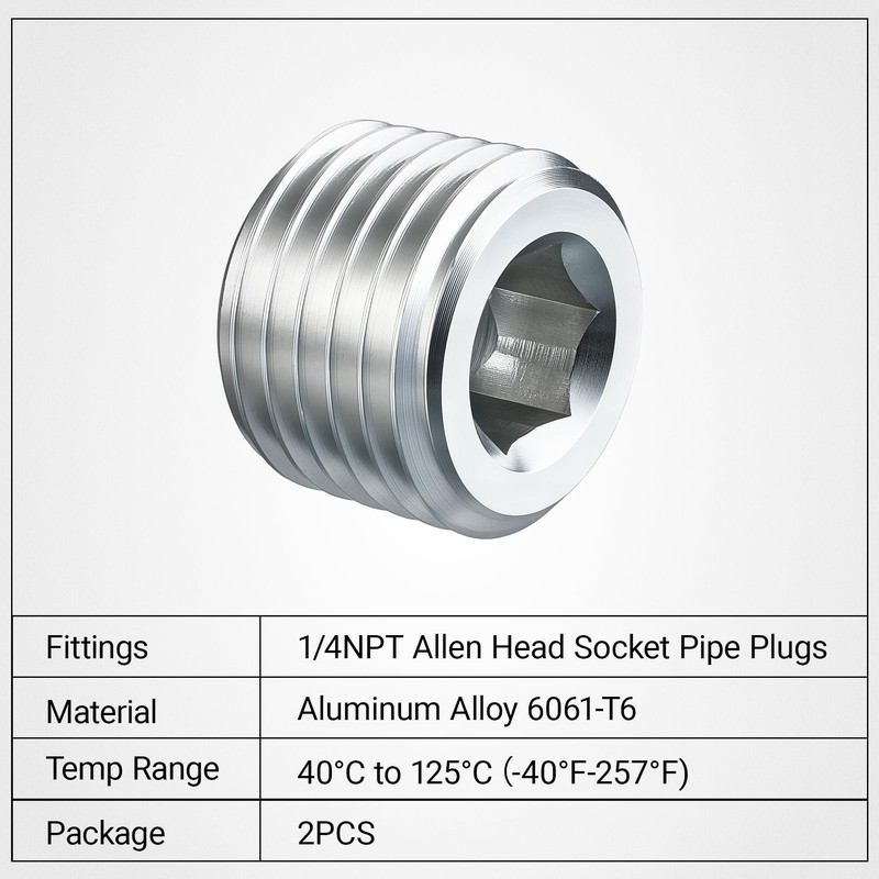 - [Seal] The allen head 1/4 NPT plug is sealed by a 60 degree tapered thread.(Sealant or PTFE tape is recommended for installation)
