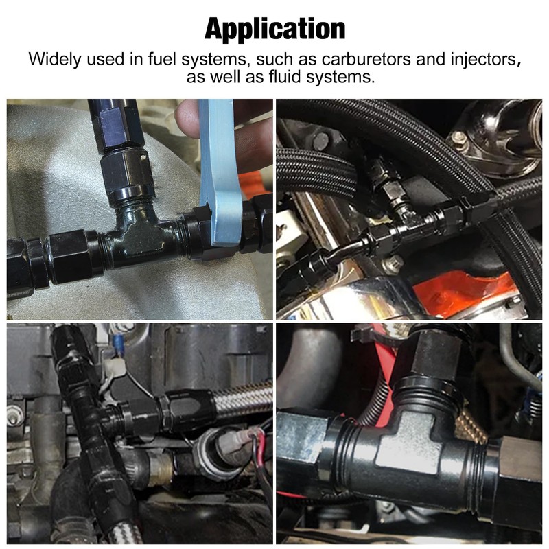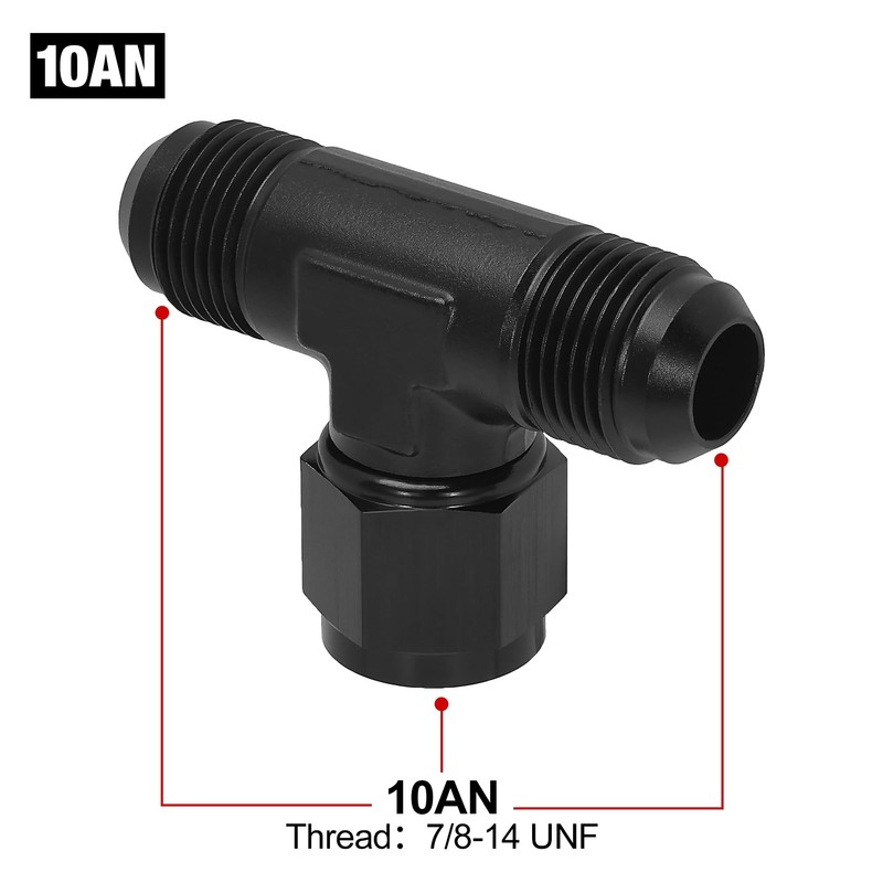 - [Application] AN10 tee fitting can work with oil, fuel, e85, water, fluid, coolant and air.