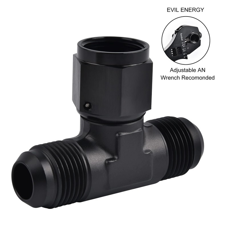 EVIL ENERGY 10AN Male Tee Fitting Adaptor with AN10 Female Swivel on Side Black