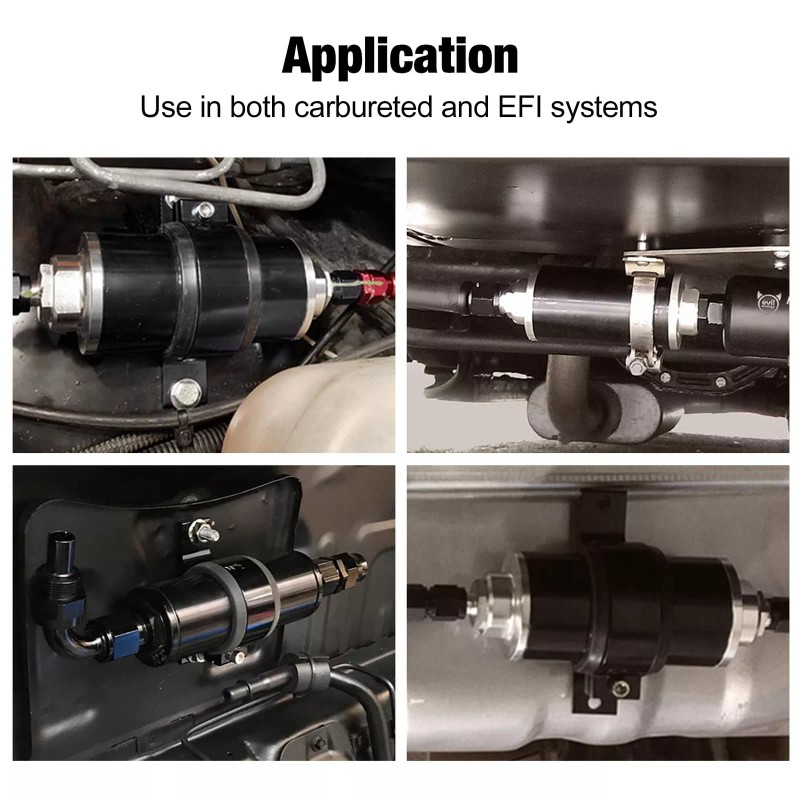 - [Application] Universal fuel filter, includes an6, an8, an10 adapters for different size applications.