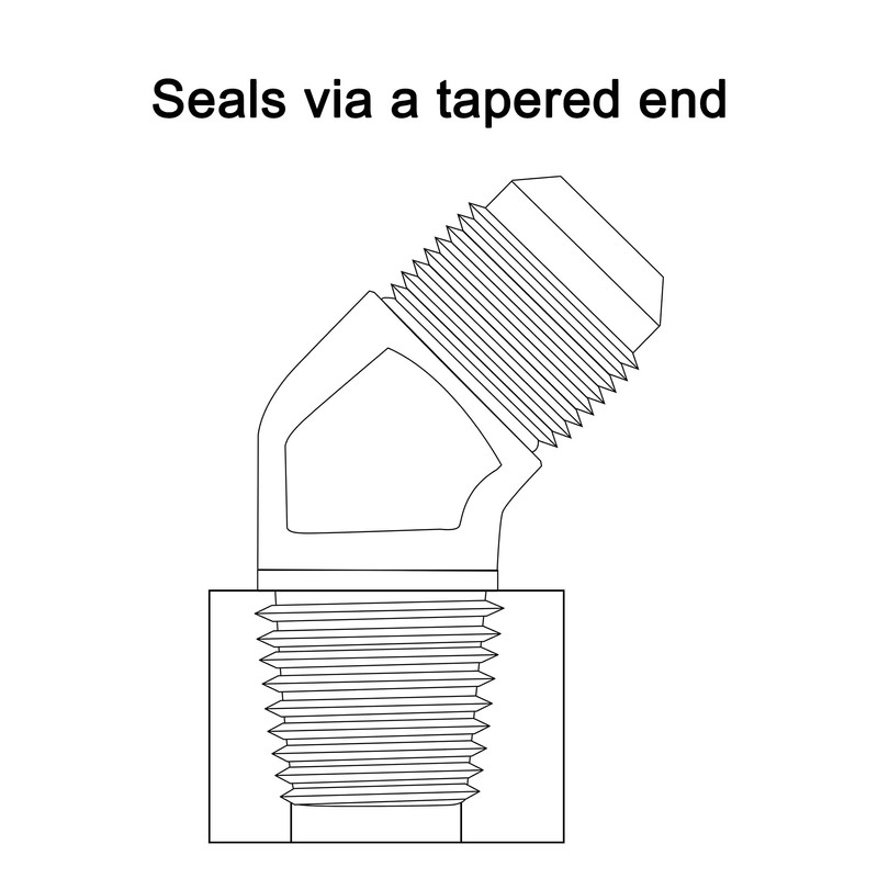 - [Sealing] The AN side of the flare is sealed by a 37 degree angle and the NPT thread side is sealed by a 60 degree tapered thread.