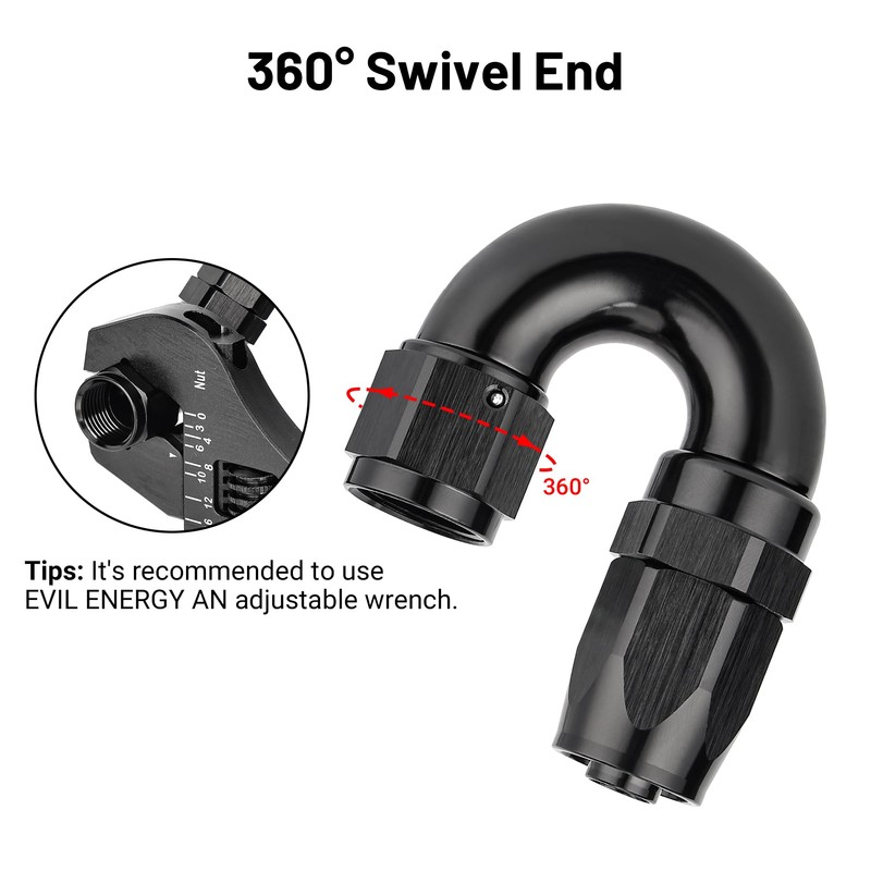 EVIL ENERGY 8AN 180 Degree One Piece Full Flow Hose End Fitting Swivel For CPE Braided Hose