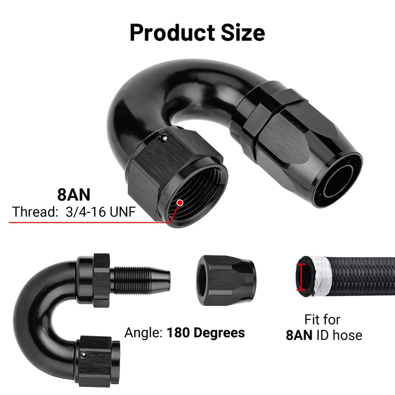 - Application:The AN8 hose end is only work with stainless braided and nylon braided hose .