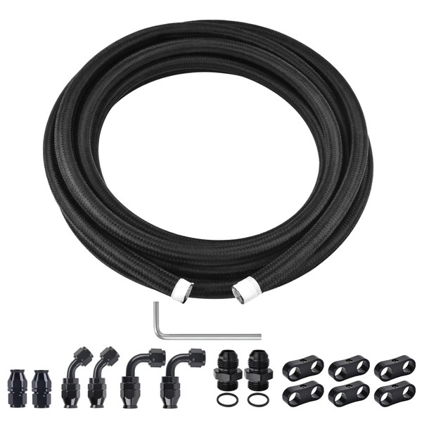 - [Size] 8an fuel hose ID: 0.39inch. OD: 0.55inch. Length: 10 feet.Minimum Bend Radius: 4" (101.6mm). Please measure before purchase! (Includes: as shown in the picture.)