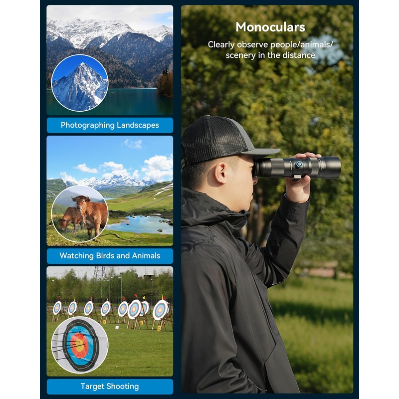 • 【CNC Aluminum Alloy Material】: Crafted with precision, our spotting scope features a durable high - precision CNC aluminum alloy body, with a surface treated by an anodizing process, ensuring excellent wear and scratch resistance. At just 741g, this lightweight, compact scope comes with a handy storage bag for easy portability. Whether you're into archery, bird - watching, wildlife viewing, hiking, camping, landscape - gazing, or stargazing, it's your go - to gear for outdoor adventures.