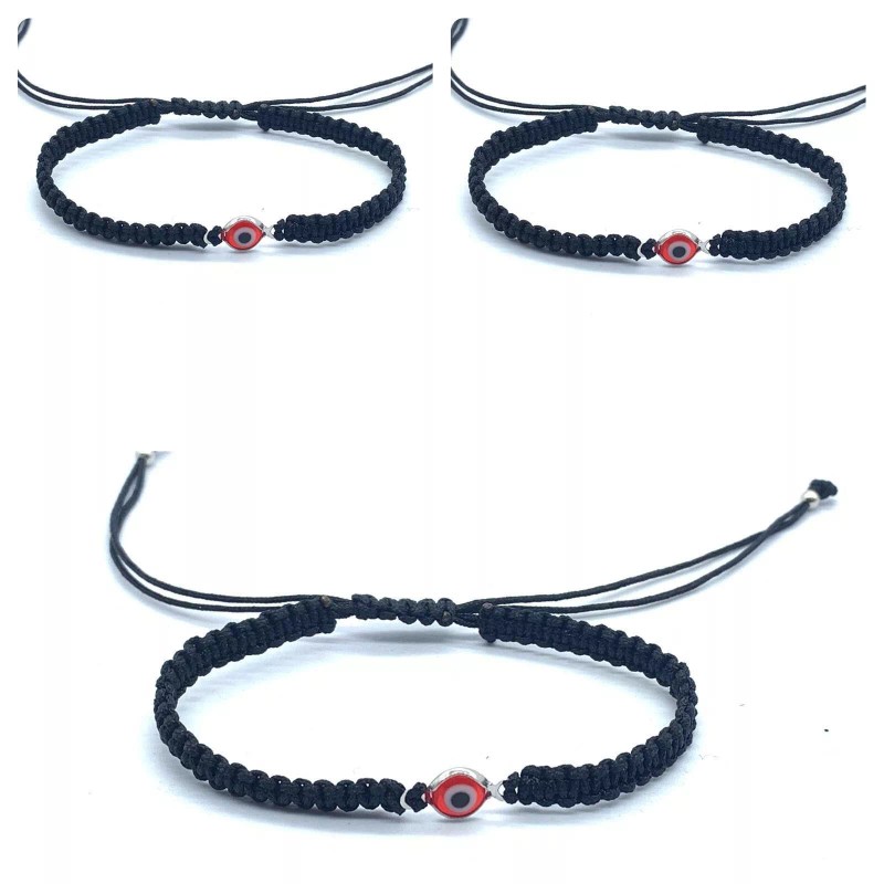 Evil Eye Macrame Black Cord Bracelet Bad Energy Protect Round Red pack x 3