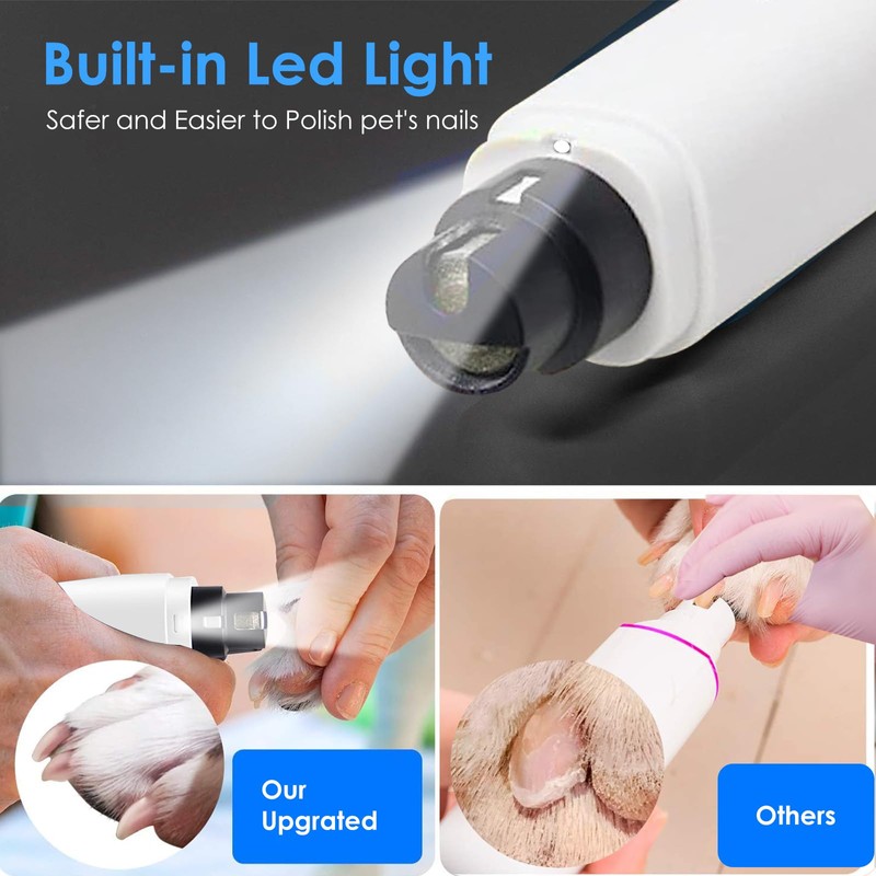 EVISTR Electric Nail File for Dogs - Pet Nail Clippers with 2 Fast Cutting Speeds, LED Light for Grooming Claws for Small, Medium and Large Dogs