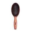 This hairbrush is made with natural boar bristles that help maintain the health and condition of hair, where its unique structure carries sebum from the scalp to the end of the hair shaft. By coating each hair strand with sebum, boar bristle brushing helps to repair dry hair and add shine. Bradford's high-heat resistant nylon pins penetrate the cuticle deeply for added smoothness and shine, while a natural, soft rubber cushion provides gentler styling. This bristle brush is made with wood from environmentally conscious forests.