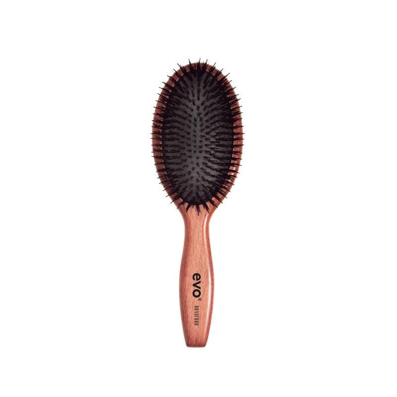 Evo Bradford Pin/Bristle Dressing Brush is a hairbrush that dresses hair for polished and smooth styling, especially on long, thick, wavy, or curly hair.