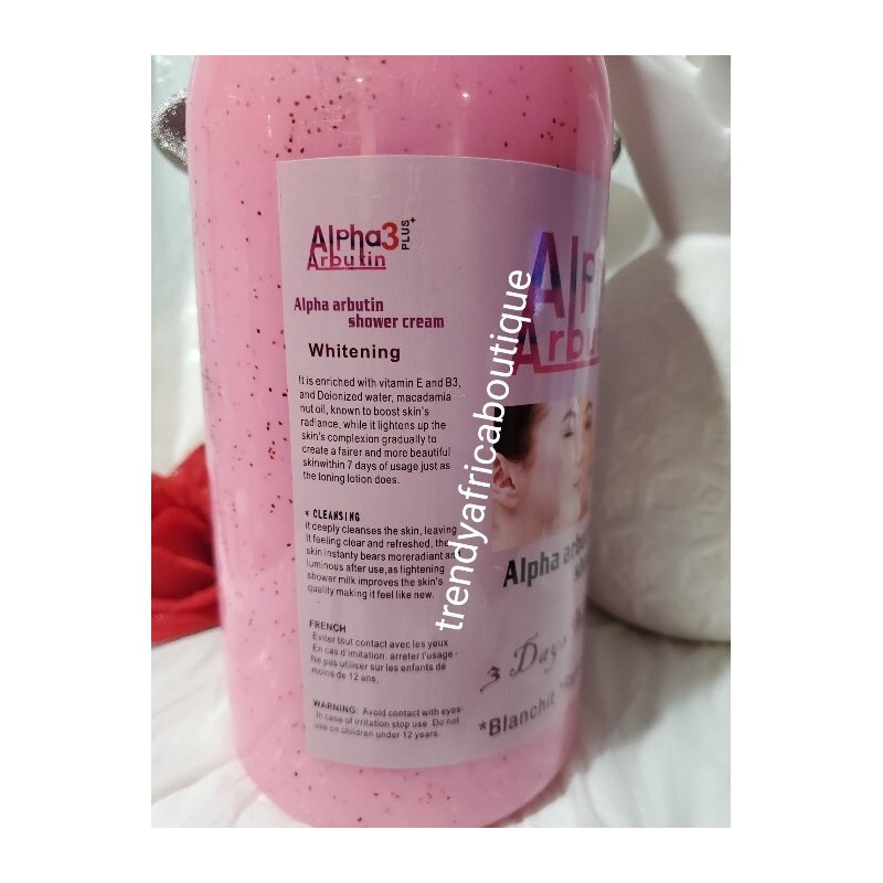 Alpha arbutin 2 plus concentre shower gel. Is super whitening and exfoliating with deep cleaning, soften and moisturize the complexion