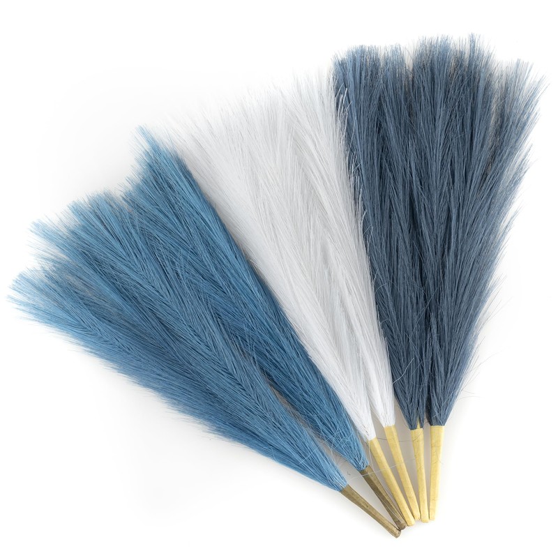 - A mix of colors and good textured behemoths: Composed of 6 stems, including 2 Blue , 2 White and 2 Indigo, these three shades are really good for mixing but can also be separated. They are so fluffy and realistic and have a really impressive look that goes well with a variety of decorations.