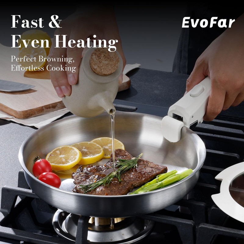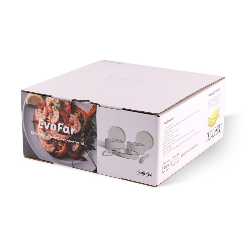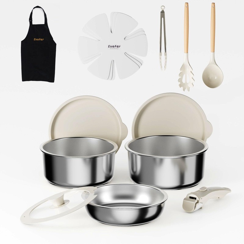 EVOFAR 14 pcs Stainless Steel Cookware Set, Detachable Pots and Pans Set with...