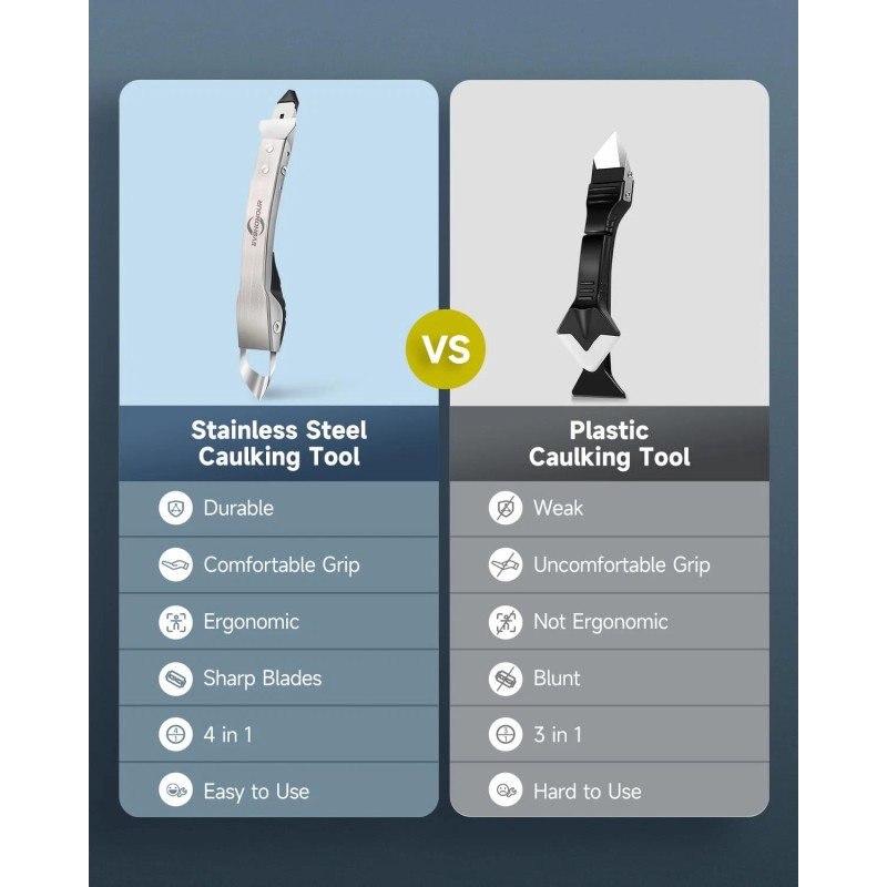 EVOHONOUR Caulking Tool Kit, Stainless Steel Caulk Remover Tool, 4 in 1 Grout...