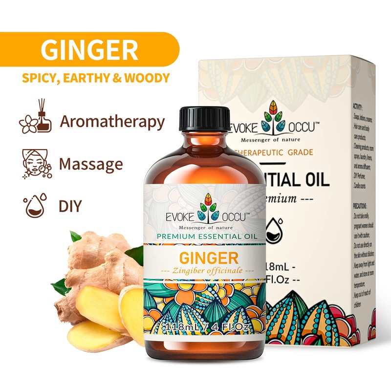 - Aromatically, Ginger Essential Oil is spicy and warming. It can be used all year around and is especially well suited for fall and winter months.Ginger Oil blend well with citrus oils and other spice oils in the diffuser.Topically, Ginger Essential Oil can be useful in blends and formulations intended to help improve circulation. It's a frequent addition to blends for massage, arthritis and muscle aches and pains.