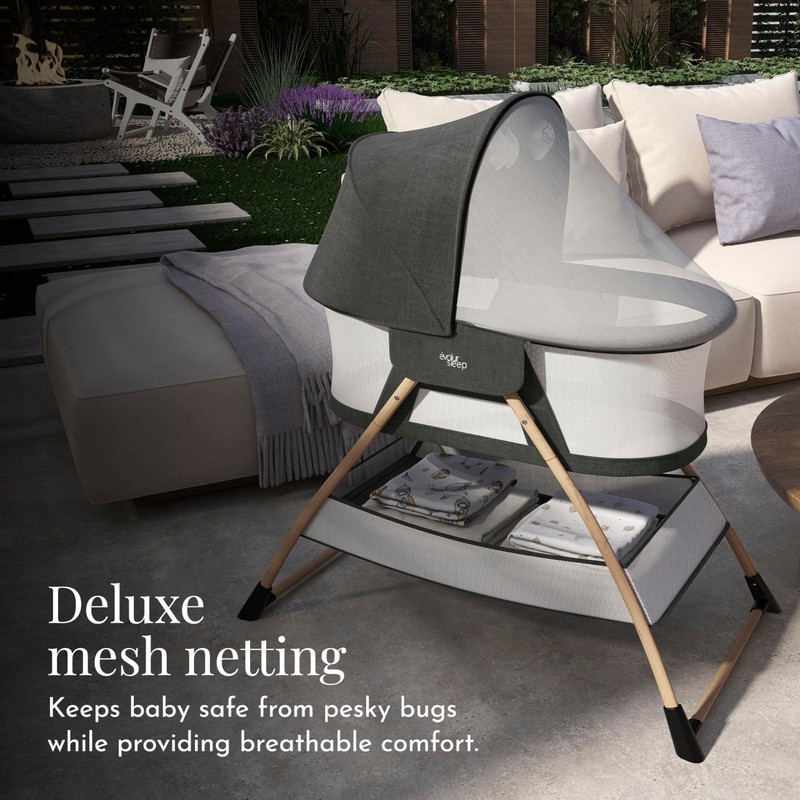 - PRODUCT SPECS: Available in sleek green and black finishes, make way for your baby’s dreamy nest for the first 0-5 months of life. Product dimensions are 43.3” L x 24.4” W x 34.6” H, with a weight capacity of 19.8 Lbs.