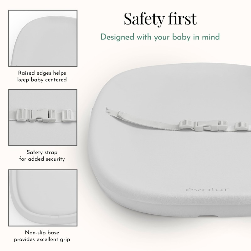 - LIGHTWEIGHT & PORTABLE: Featured with contoured walls and made of solid, sturdy construction, the lightweight & portable Evolur Eva Changing Pad fits onto all changing tables.