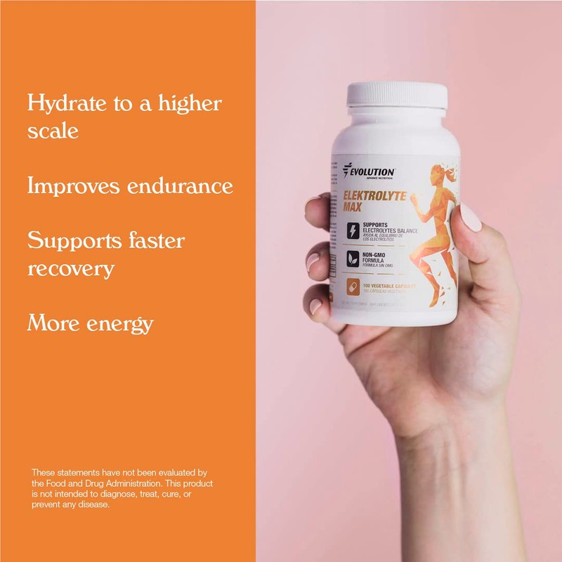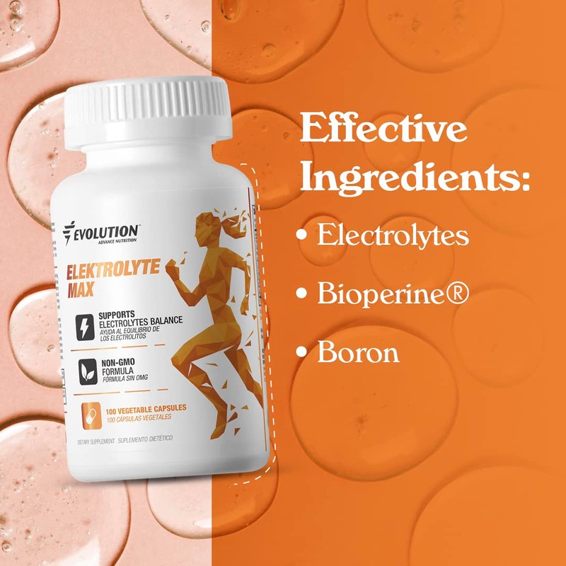 Evolution Advance Sport Nutrition Elektrolyte Max – Improves Endurance, Fast Recovery and Supports Electrolyte Balance – Non-GMO Formula - Dietary Supplement – 100 Vegetable Capsules