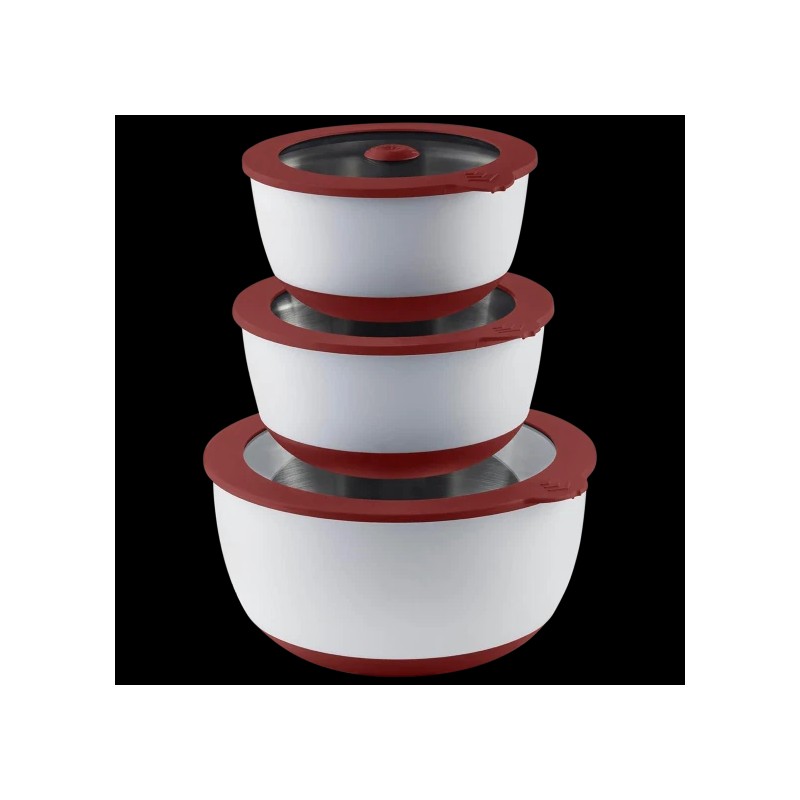 Evolution Microwave Stainless Steel Mixing Bowl with Lid Set (Red)