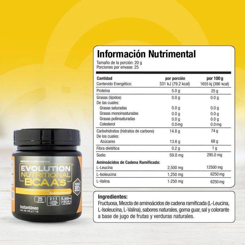 Con Evolution Nutritional BCAA’s Mango, no solo obtienes un apoyo nutricional esencial, sino un suplemento diseñado para quienes exigen más de sí mismos y buscan resultados reales ⚡🔥.