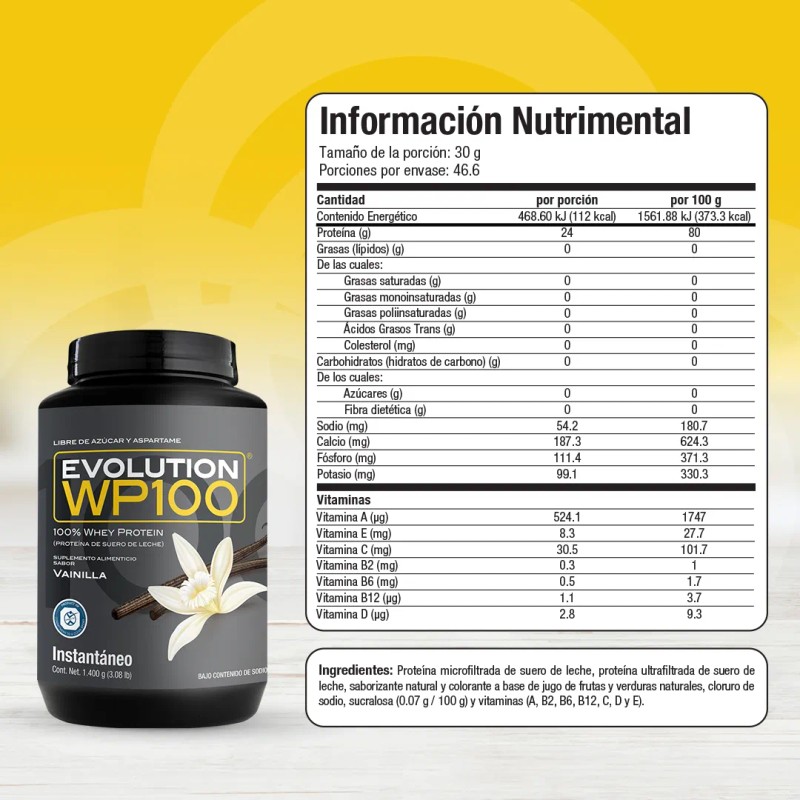 Evolution WP100 Whey Protein 1.4kg | 40 Servicios | Proteína de Suero de Leche Sabor Vainilla | Aumenta Masa Muscular