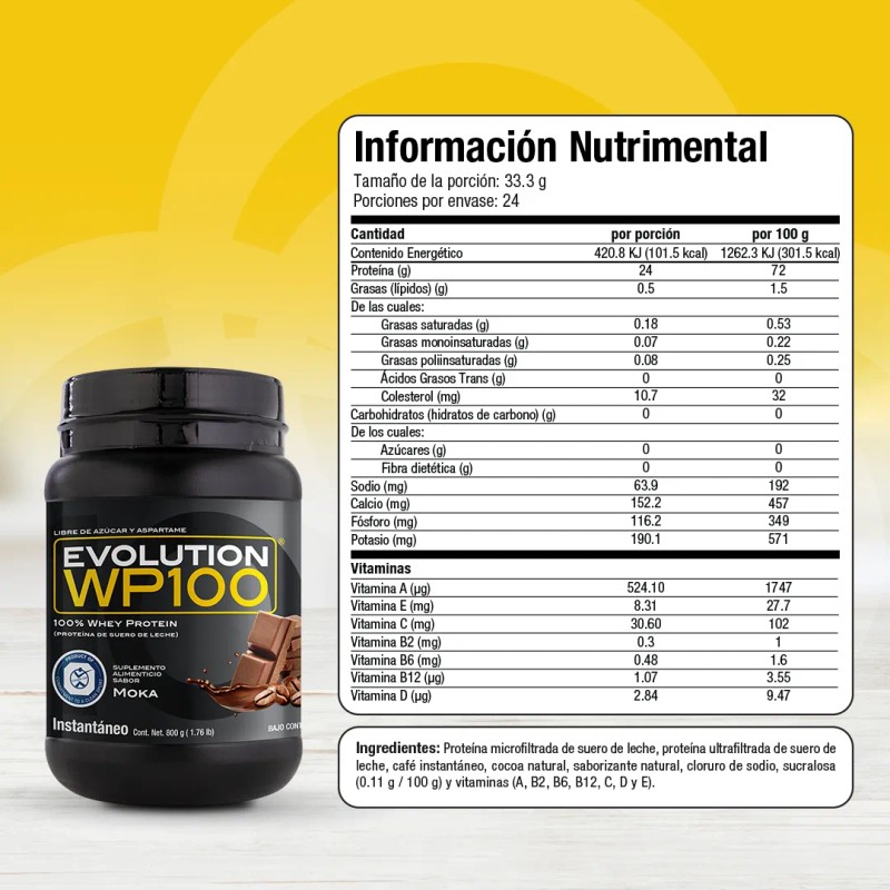 Si buscas un suplemento que combine potencia, nutrición y sabor único, la Evolution Whey WP100 sabor Moka es la elección ideal 😍. Con una presentación de 800 g, este polvo de proteína de suero de leche ofrece una fórmula completa que apoya el crecimiento muscular 💪, acelera la recuperación tras el entrenamiento 🏋️ y aporta energía para rendir al máximo en tu día.