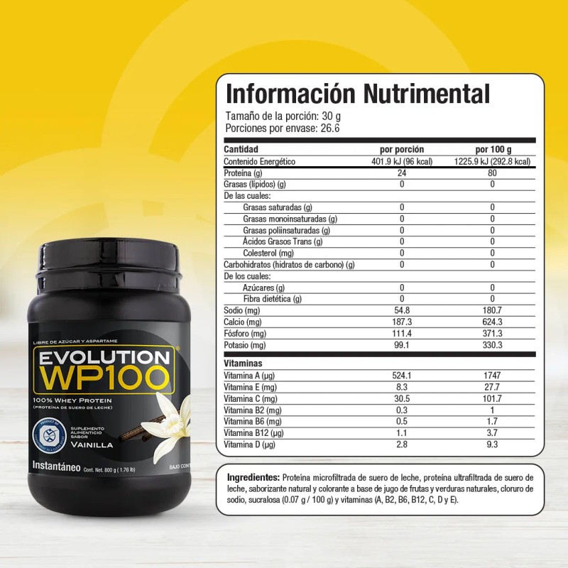 Evolution Proteina Suero De Leche (whey) Wp100 800 G Sabores Sabor Vainilla