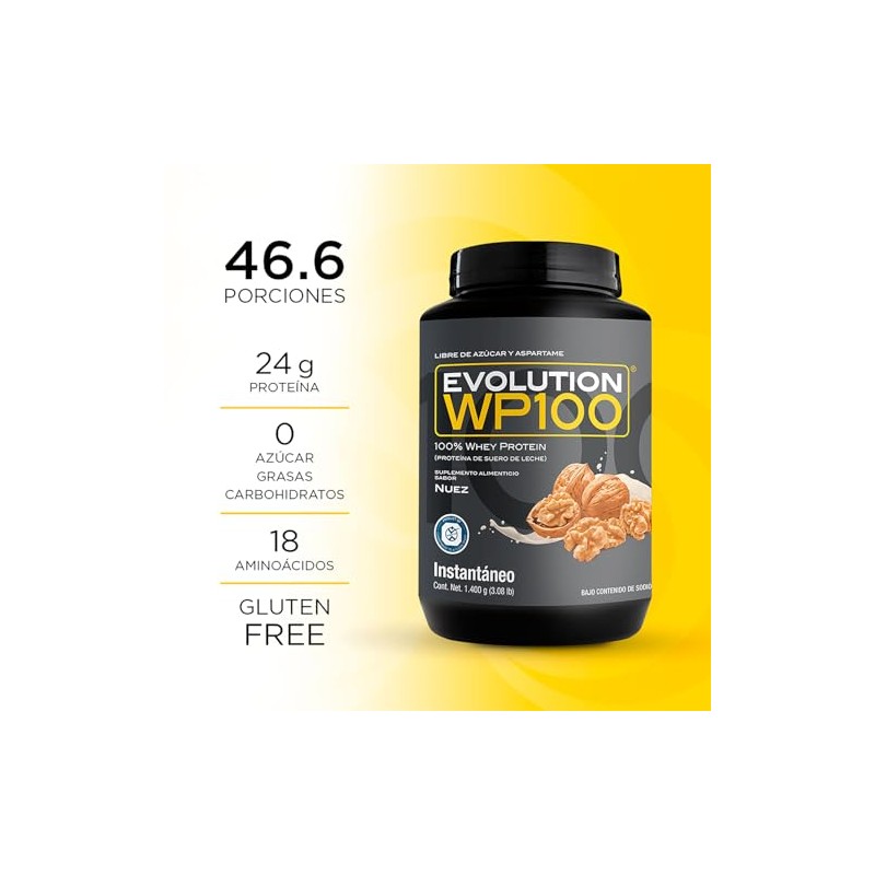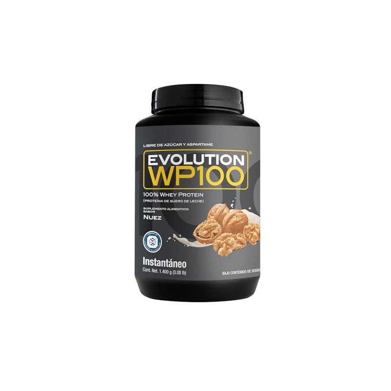 EVOLUTION, Protena de Suero de Leche, WP100, Whey Protein, 18 Aminocidos, Sin Gluten, Sugar Free, Post Workout, Sabor Nuez, 42.7 Porciones, 1400g