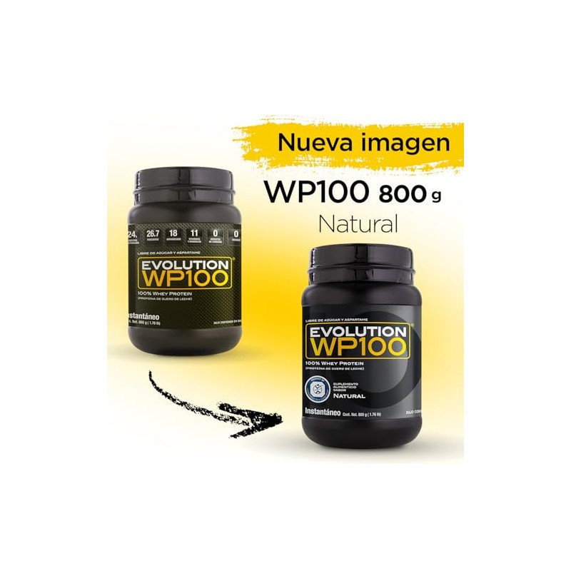 Acerca de este artículo PROTEÍNA DE SUERO DE LECHE. La proteína WP100 sabor Natural de Evolution, es una proteína aislada de suero de leche microfiltrada y ultrafiltrada. Contiene todos los aminoácidos esenciales y no esenciales, está enriquecida con 11 vitaminas y minerales CARACTERÍSTICAS. La fórmula especializada y exclusiva de Evolution es muy baja en sodio y es altamente soluble. No contiene carbohidratos ni grasas. Además, es libre de azúcar, aspartame y gluten USO RECOMENDADO. Se recomienda tomarla diluida en 350 ml de agua o leche, después del ejercicio. Si se consume antes de la actividad física, debe de ir acompañada de alguna fuente de carbohidratos. Brinda 26.6 porciones por bote, un mes consumiéndolo por 5 días a la semana CERTIFICACIONES. Contamos con certificaciones nacionales e internacionales. Esta proteína es Keto Friendly. Este producto no es un medicamento. El consumo de este producto es responsabilidad de quien lo recomienda y de quien lo usa NUEVA IMAGEN EVOLUTION. Seguimos evolucionando para tu bienestar. Por ello, decidimos rediseñar nuestra imagen. Es posible que en tu próximo pedido recibas el producto con la imagen anterior, o mejor aún, con nuestra nueva imagen y la calidad de siempre EVOLUTION. Es una empresa mexicana con más de 10 años de experiencia en el mercado de nutrición deportiva y wellness. Gracias a su determinación, certificaciones, compromiso y visión, se ha posicionado como una de las líneas más completas de suplementos alimenticios en el mercado mexicano