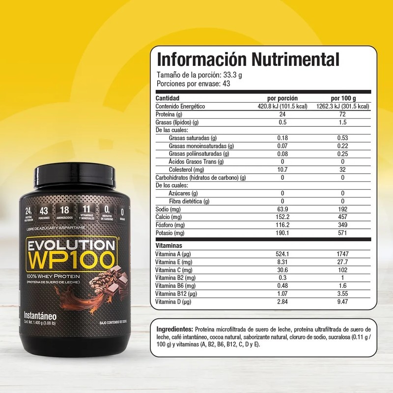 WP100 Moka es una proteína aislada de suero de leche, microfiltrada y ultrafiltrada, formulada para ser ligera, fácil de digerir y con un delicioso sabor moka. Aporta 24 g de proteína por porción, enriquecida con 18 aminoácidos y 11 vitaminas y minerales, convirtiéndola en una opción ideal para complementar tu nutrición diaria.