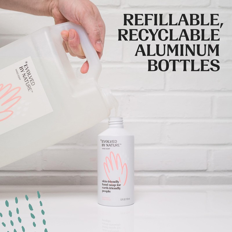 - SENSITIVE SKIN & PLANET FRIENDLY: 99% naturally derived, gentle, biodegradable, safe for waterways, cruelty-free and bottled in recyclable, refillable aluminum. Not formulated with harsh chemicals, including parabens, phthalates and sulfates. This recyclable gallon bottle refills our 12-oz aluminum dispensers 10+ times.