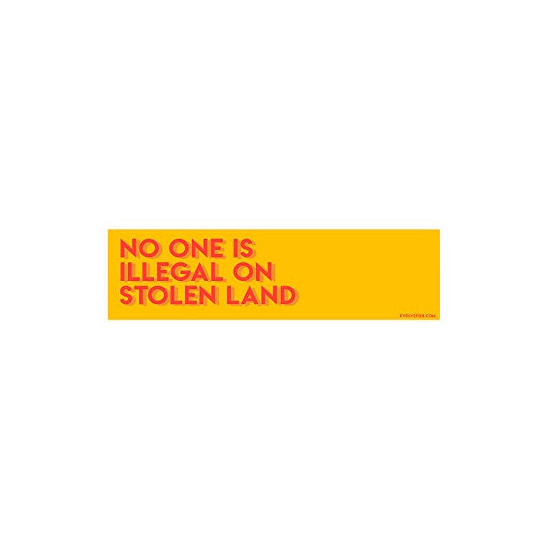 EvolveFISH No One is Illegal on Stolen Land Yellow Bumper Sticker - [11'' x 3'']