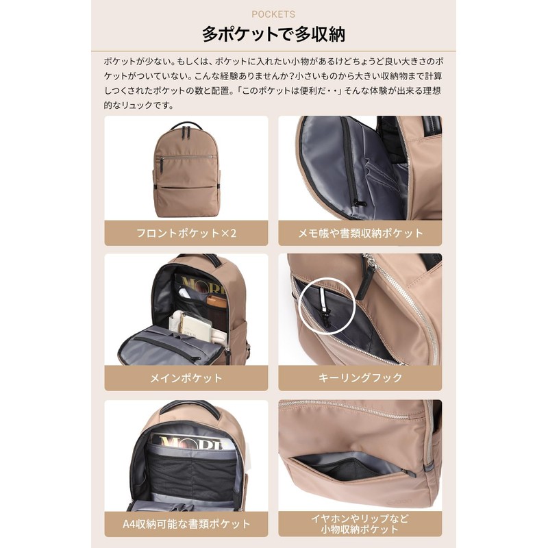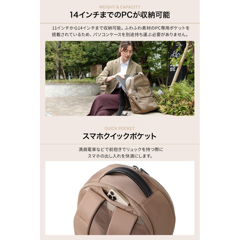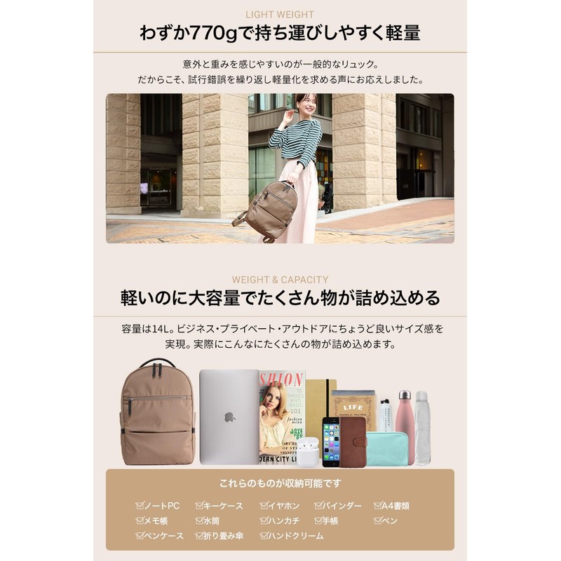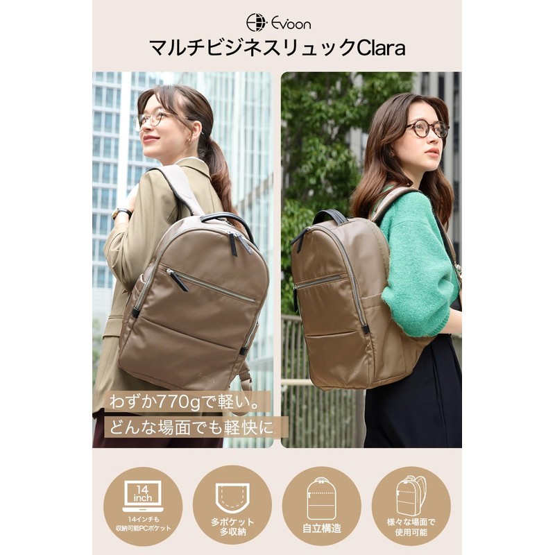 [Evoon] Multi Business Backpack Clara Rucksack, Women's, Business Backpack, 27.4 oz (770 g), Lightweight, Women's, Backpack, Holds 14 inch PCs (14 L), beige