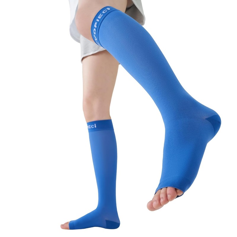 EVOPLECI Blue Open Toe Compression Socks 20-30mmHg Toeless Compression Socks for Reduce Swelling and Alleviates Varicose Veins