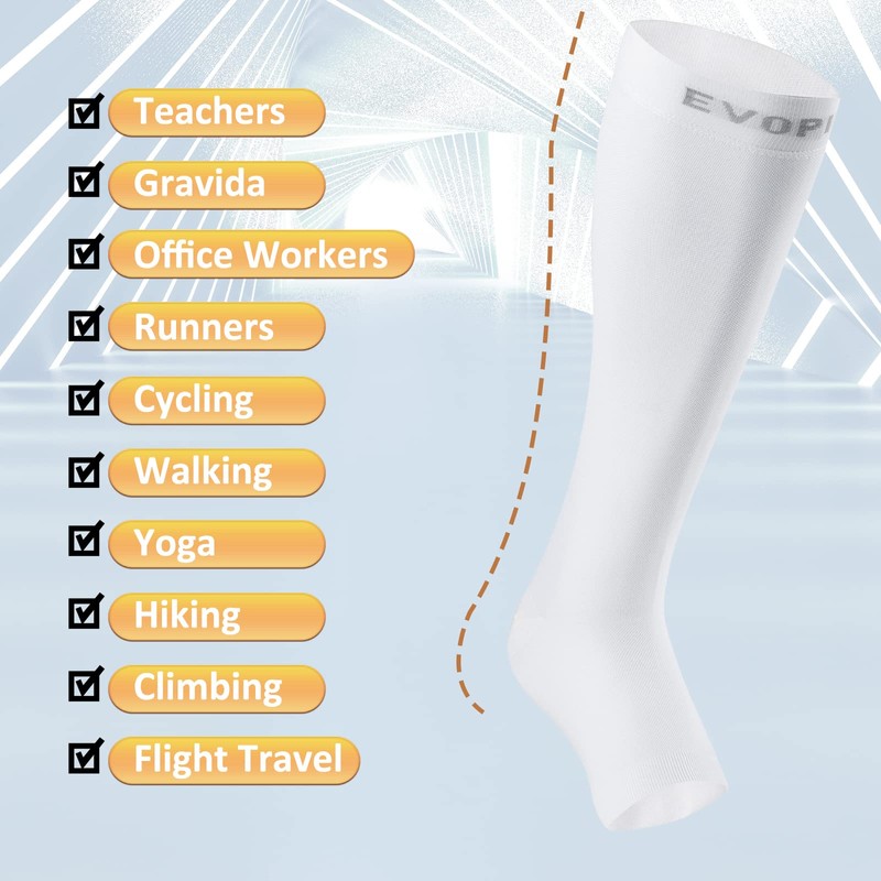 EVOPLECI TALL-WHITE-S - Calcetines de compresión de punta abierta de 15 a 20 mmHg para reducir la hinchazón y aliviar las venas varicosas, 1 par, Blanco, 2