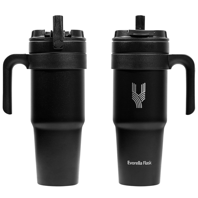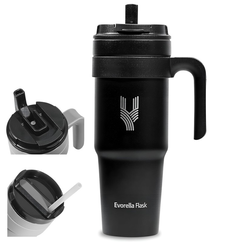 EVORELLA FLASK Tumbler 1.0 with handle 40oz Stainless Steel Vacuum Insulated Tumbler with Leak Proof 2 in 1 Lid and Straw for Water, Coffee or Tea, Smoothie (Black)