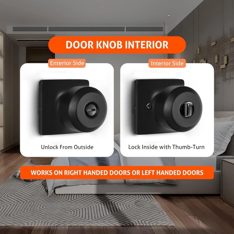 ๐๐ป๐๐ฒ๐ฟ๐ถ๐ผ๐ฟ ๐๐ผ๐ผ๐ฟ ๐๐ป๐ผ๐ฏ๐ ๐๐ผ๐ฟ ๐๐ฒ๐ฑ & ๐๐ฎ๐๐ต - Privacy knob has a keyless lock set for bedrooms, bathrooms , etc.The latch bolt can be locked by thumb turn button on the inside knob,and has a slot on the outside knob that can be unlocked with a screwdriver or coin.
