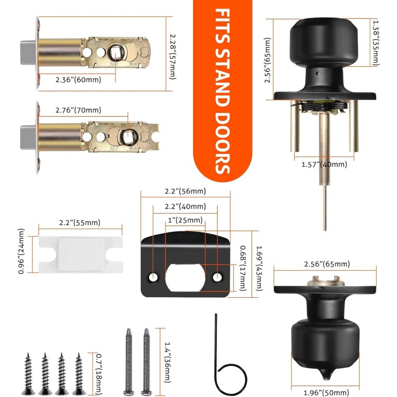 ๐๐ฑ๐ท๐๐๐๐ฎ๐ฏ๐น๐ฒ ๐๐ฒ๐๐ถ๐ด๐ป - The length of the door latch can be adjusted from 60mm to 70mm(2-3/8 to 2-3/4 inch). Fits most standard-sized doors ranging from 1-3/8 inch or 1-3/4 inch in thickness.The distance between the upper and lower keyholes can be adjusted (8-1/16"-9-1/2"), please check the size according to the detailed picture before purchasing.