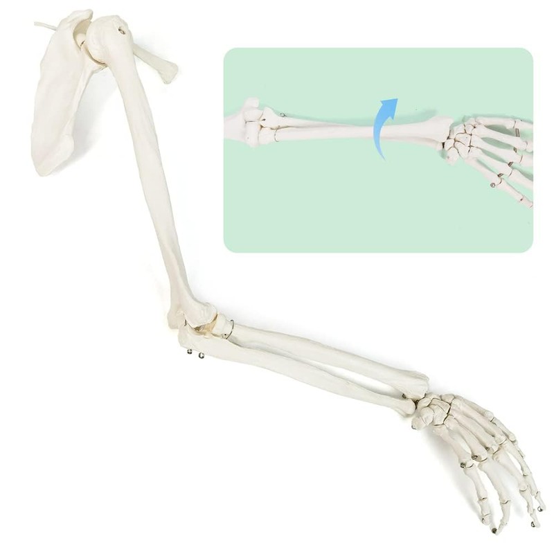 - ▲Life-Size Human Skeleton Arm Anatomy Model - This anatomical arm model provides great detail of the bony structures of the human arm, complete with scapula, clavicle and fully articulated hand. This arm skeleton model is ideal for study of individual bones and can demonstrate flexibility in the elbow, wrist and fingers.