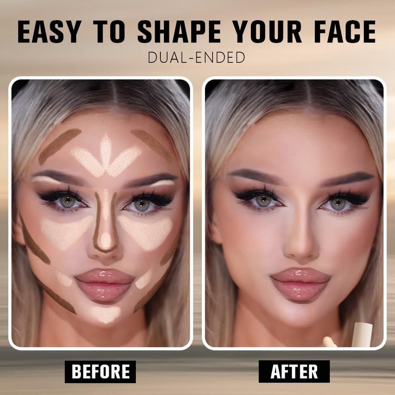 - 【2 in 1 Desigh】 The dual ended stick features two creamy shade combinations, with one to add depth and definition and the other to lift. Apply easily,fits the skin.