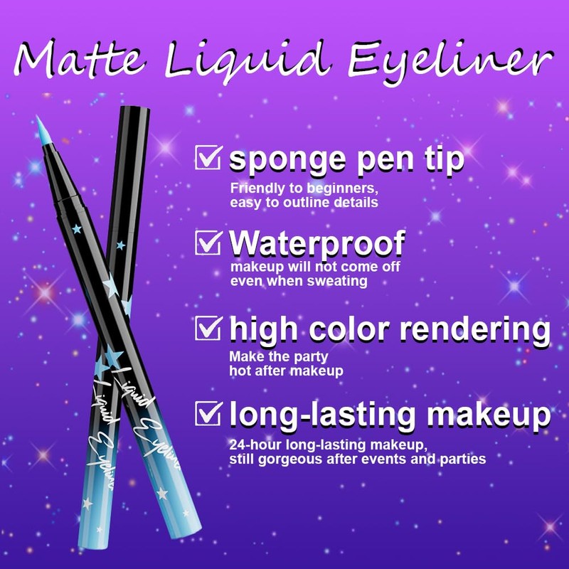 - 【Vibrant Sky Blue Liquid Eyeliner for Bold Looks】Create striking eye designs or artistic face and body paint with this highly pigmented Sky Blue liquid eyeliner. Whether you’re going for a bold cat-eye or detailed creative makeup, this liner delivers intense color payoff that pops on all skin tones.