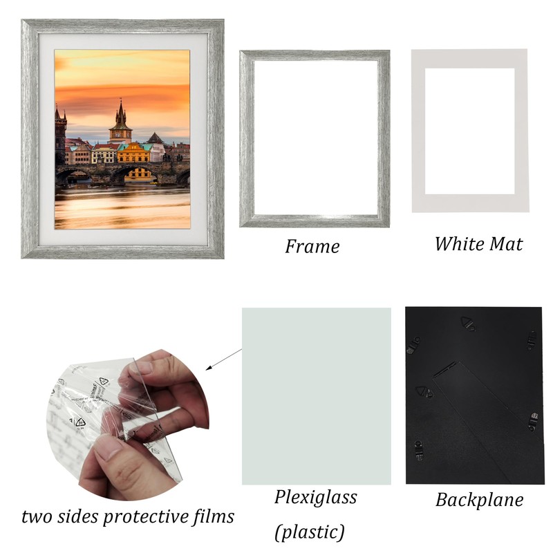 • PICTURE SIZE: Holds 8x10 photo with mat or 11x13 Inch without mat. Please understand that the mat opening is 0.5 inches smaller than the the photo in order to be covered.