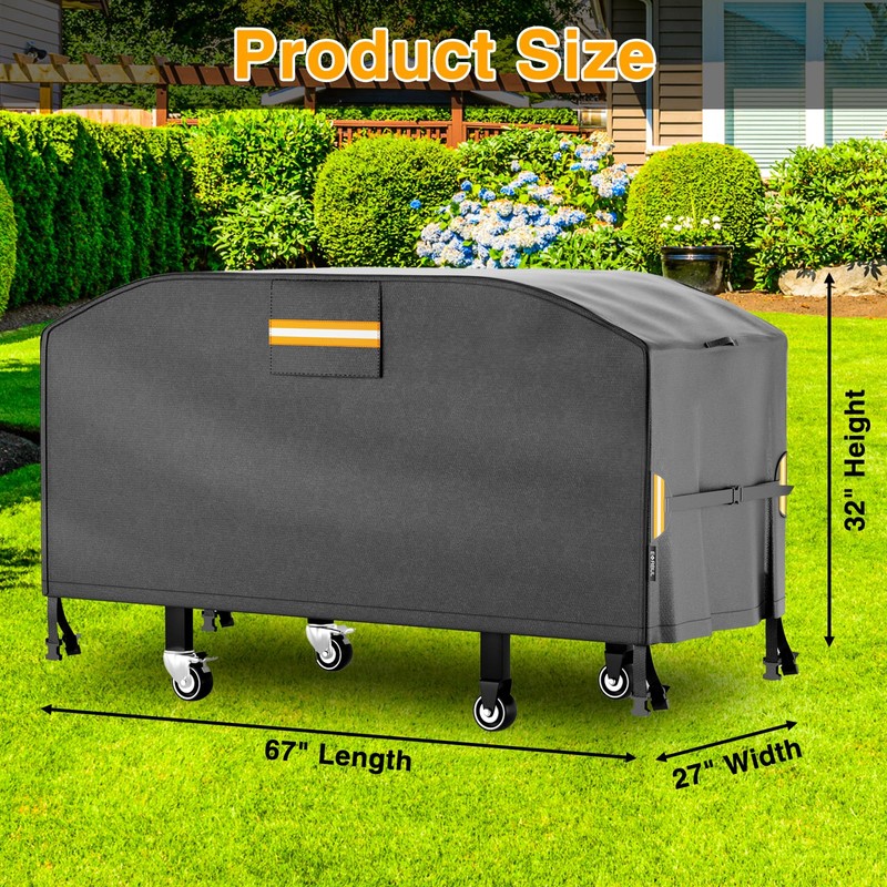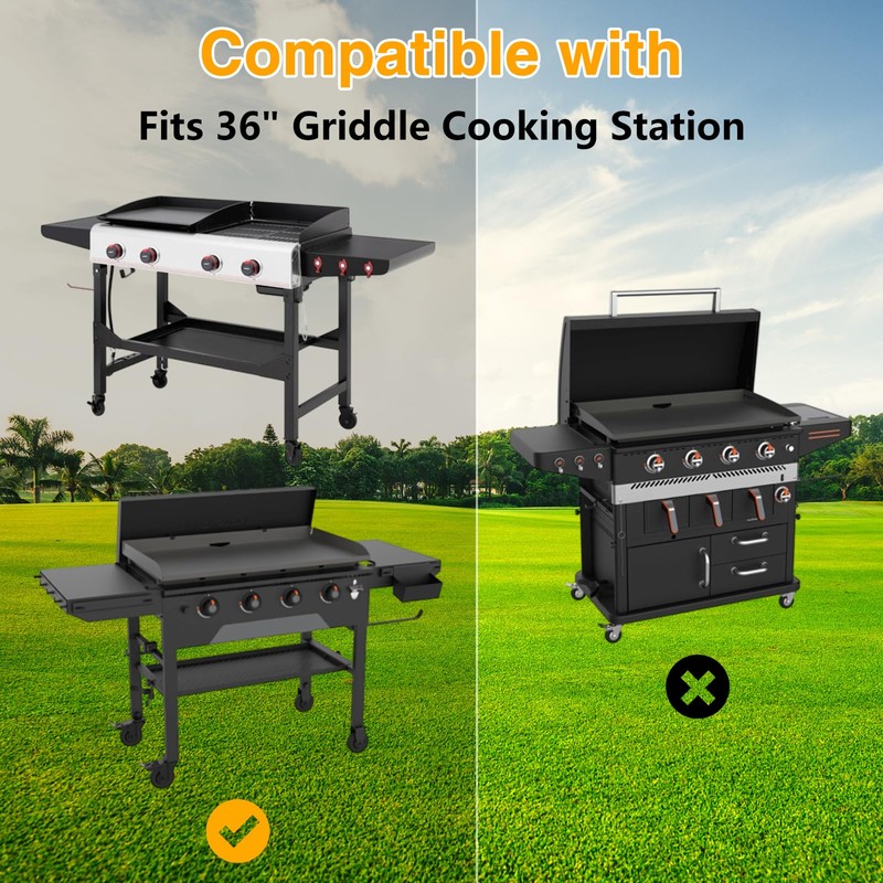 - 【Griddle Cover Size and Fitment】The size of the Outdoor Waterproof Flat Top Gas Grill Cover is 67"L x 27"W x 30"H,Compatible with Blackstone 36" Griddle Cooking Station , Weber 36" Griddle and most 4 burner flat top grill griddle. Does not fit for Blackstone 36”ProSeries Griddle;