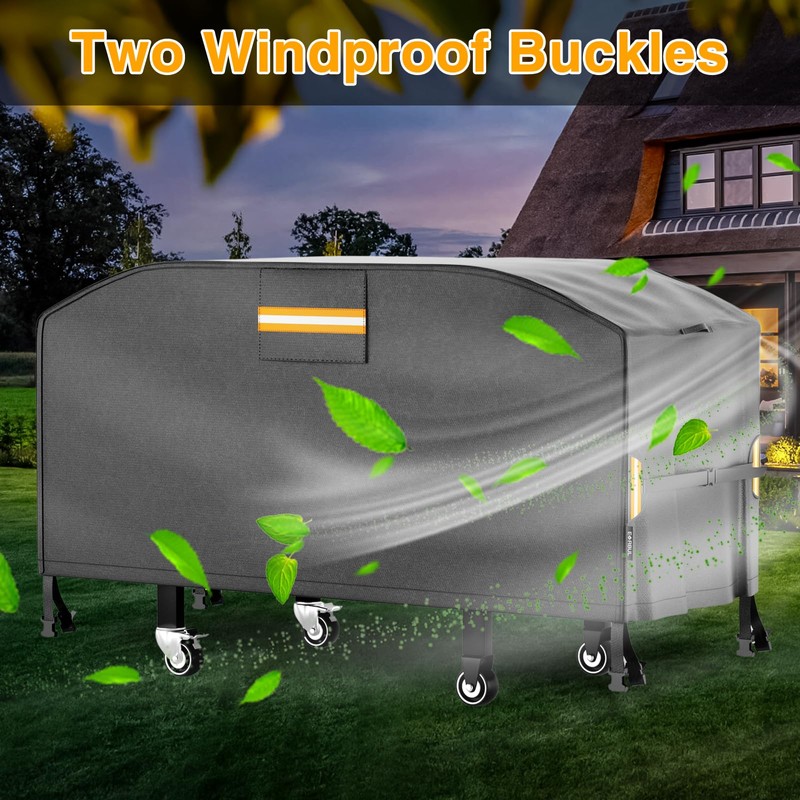 - 【Two Windproof Buckles】 There are two adjustable windproof buckles on both sides of the grill, so that the cover can fit well on the grill when fastened and won't blow off even in high winds;